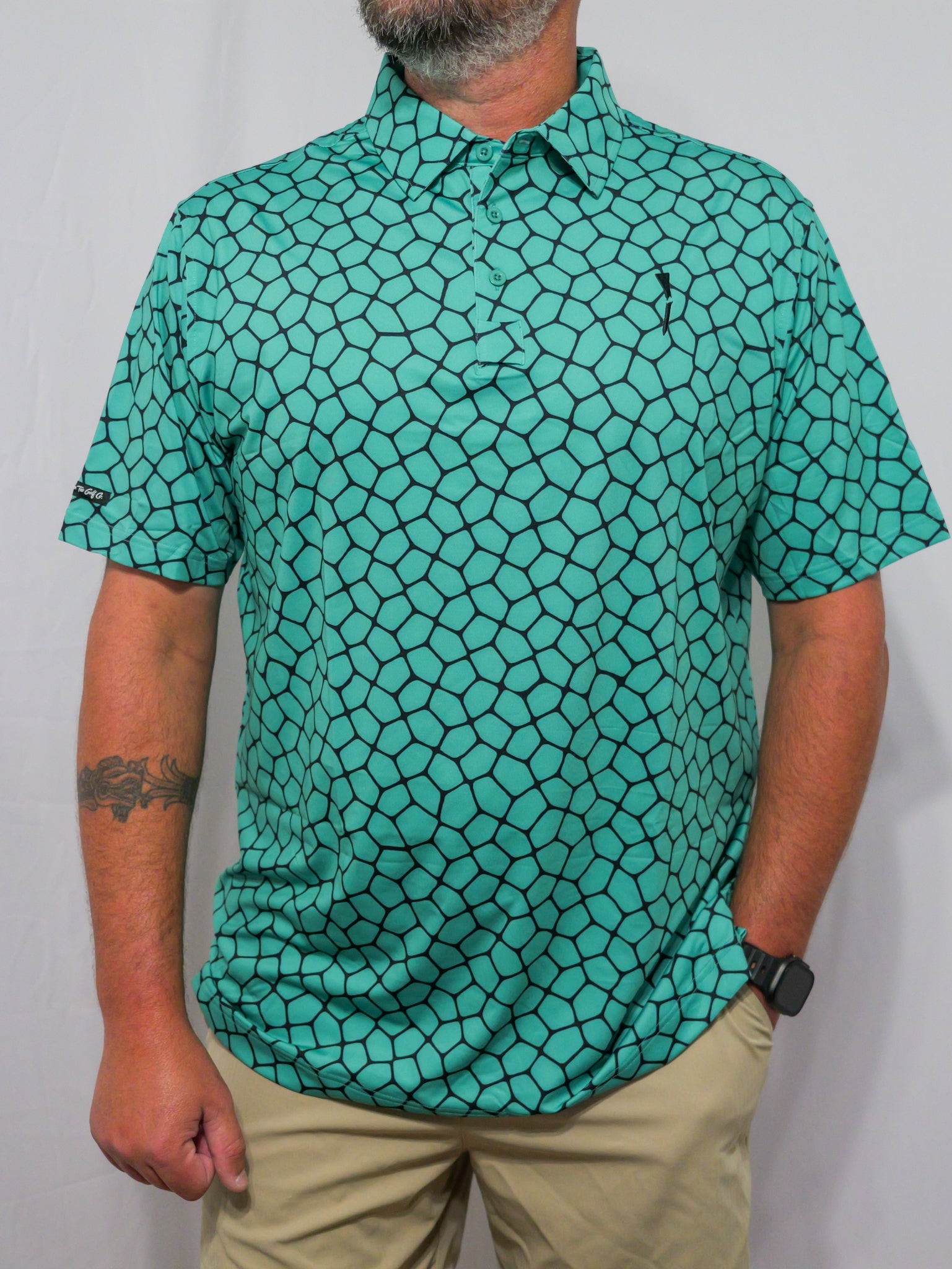 Our abstract polo offers 4-way stretch and UPF 50 protection, designed for the course. Stay comfortable, protected, and ready for any outdoor adventure.